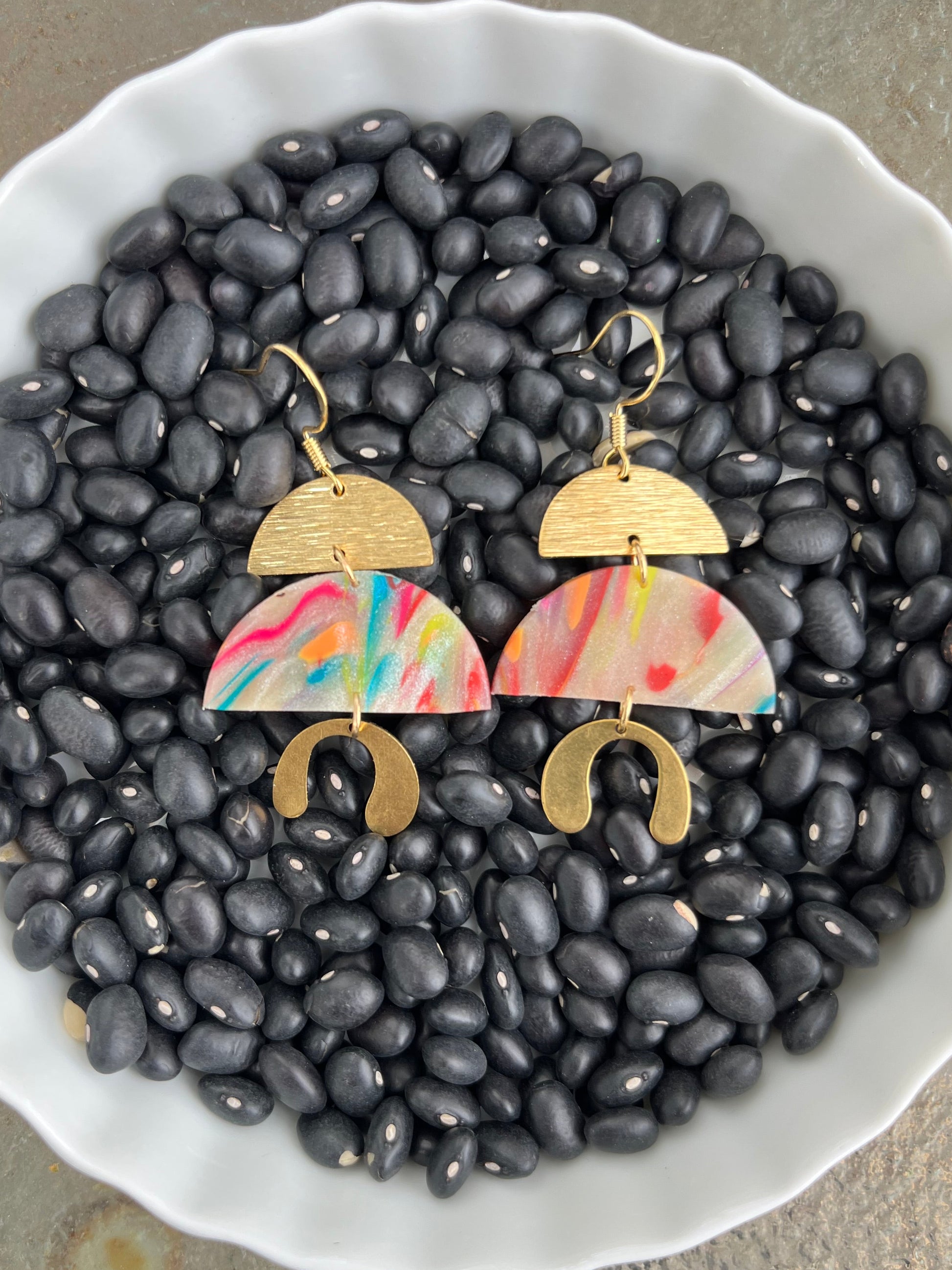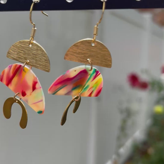 Each pair is lovingly handcrafted with eye-catching geometric tiers that create beautiful movement and dimension. The layered semi-circle design adds a contemporary edge to any outfit, making these earrings perfect for the woman who loves to stand out.
