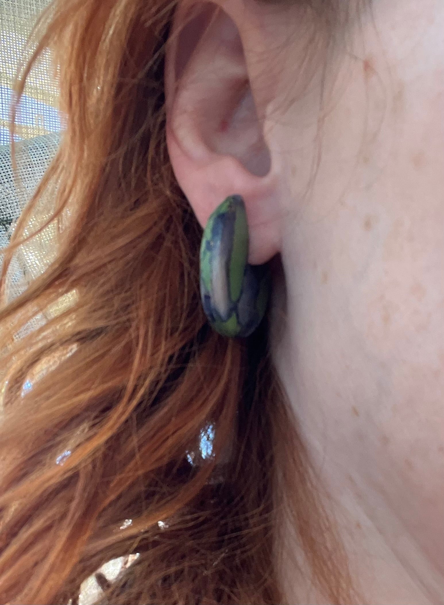 These earrings are perfect for adding a pop of color to your everyday look or making a statement at special occasions. The organic marble effect brings an artistic, bohemian vibe that pairs beautifully with both casual and dressy outfits.