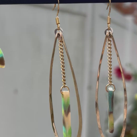 Each pair is lovingly handcrafted with a gorgeous hammered texture that adds depth and character to the stunning aqua mosaic design. The elongated oval shape creates a flattering, feminine silhouette that moves beautifully and catches the light with every step.