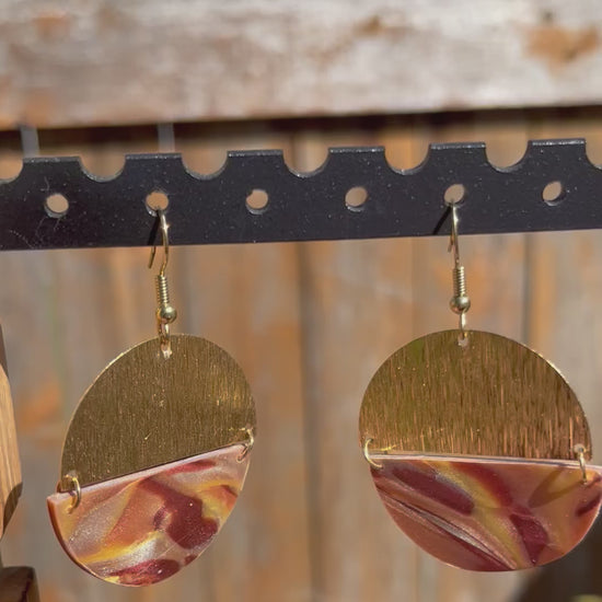 Elevate your everyday style with these sophisticated Metallic Mocha Semi Circle Earrings. These statement pieces beautifully blend brushed metallic elegance with dreamy marbled artistry, creating a look that's both modern and timeless.