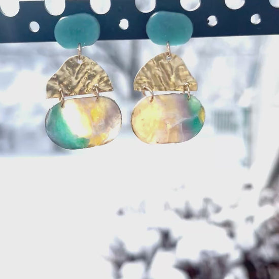 The glossy surface gives these earrings an almost gem-like quality—they have that coveted polished stone aesthetic without the weight or fragility. The faux golden bezels add a luxurious touch that makes these earrings feel extra special and polished, while the tiered silhouette creates a cascading effect that's both elegant and eye-catching.
