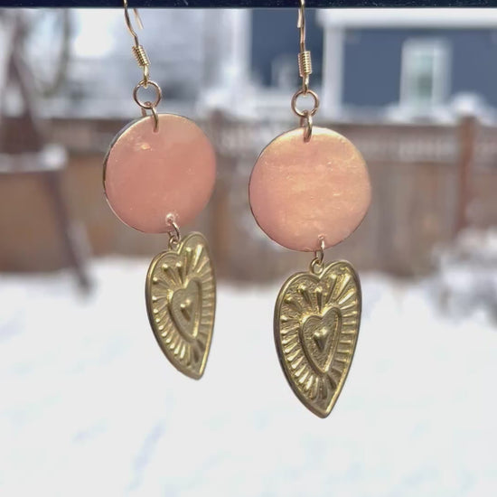 The glossy surface has an almost liquid quality—it gleams and shimmers with that coveted rose gold tone that's both modern and timeless. The golden bezels add a refined touch that makes these earrings feel extra special and polished. Perfect for date night, Valentine's celebrations, or as a thoughtful gift for someone you love (including yourself!).